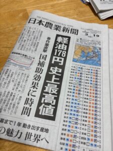 日本でも備蓄石油が放出されることも決まりました。単純に計算しても毎日200Lの軽油を使うのでとんでもないインパクトになりますので、今後の市場米価は我々としても不安です。