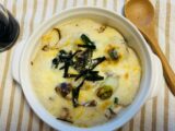 ボールに玄米粉1/2カップ、お水130cc、塩少々を加えて混ぜる。そこへ、ニラや玉ねぎを入れてざっくり混ぜる♪フライパンにごま油を入れ、生地を流し込み、両面しっかり焼けたら、生地の周りに醤油をかけたら完成(^.^)