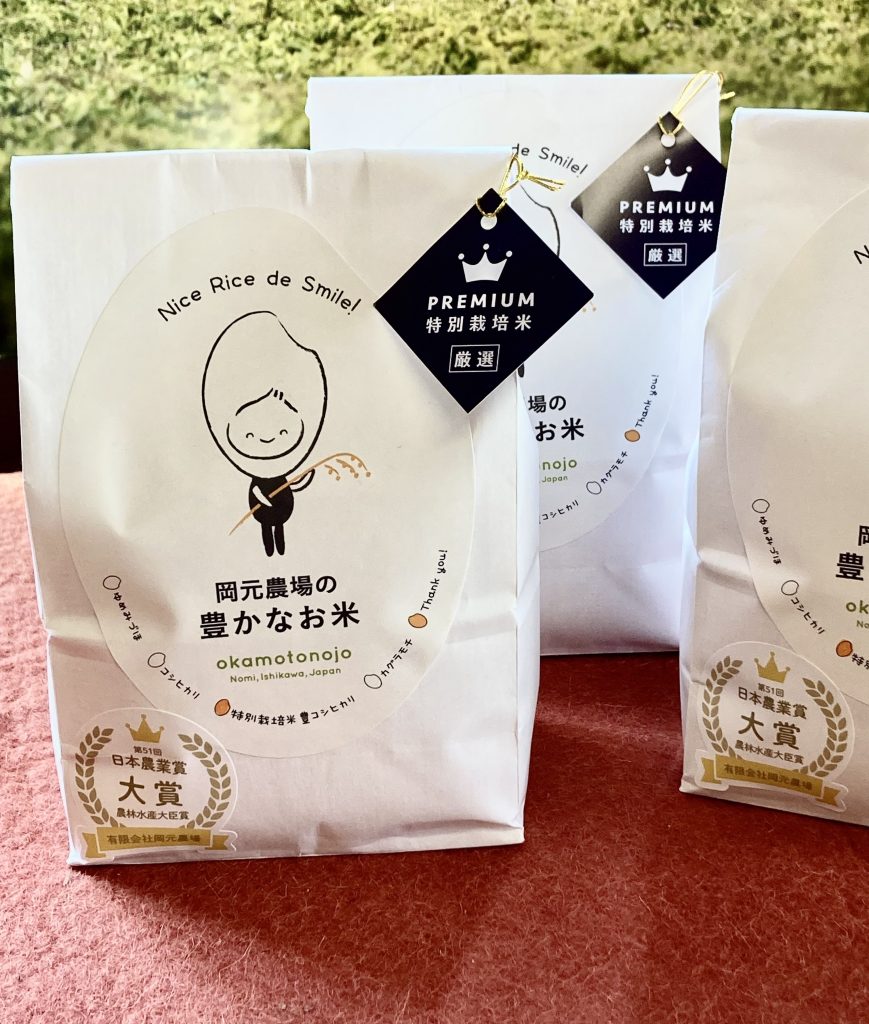 現在は、スタッフ5名(うち家族3人)で耕作面積35ヘクタール、主に水稲と地域の特産品である山の芋(加賀丸いも)を栽培する複合経営です。ホームページの情報更新は、主に代表の岡元豊と妻の雅子が行っています。